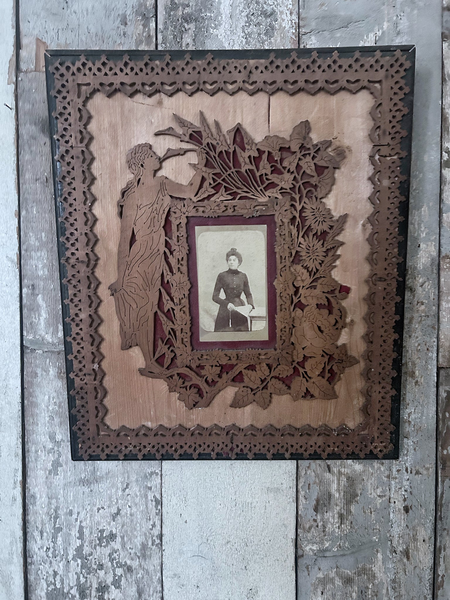 Antique Carved wooden decorative fret work Art Noveau picture frame