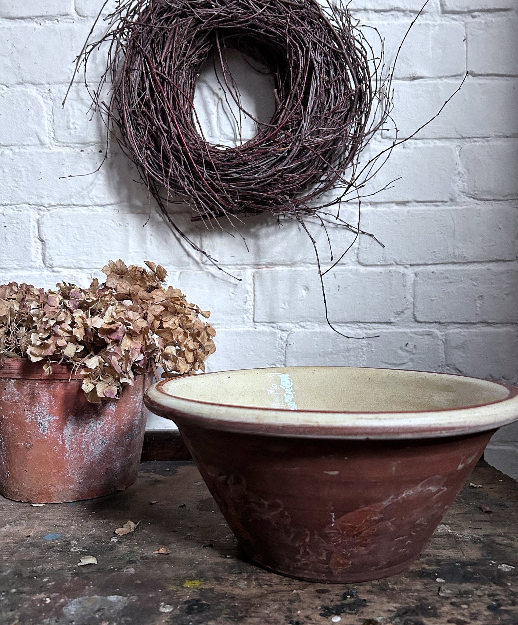 An Antique 19th Century slipware terracotta dairy bowl, Pancheon. Traditionally found in country house kitchens.