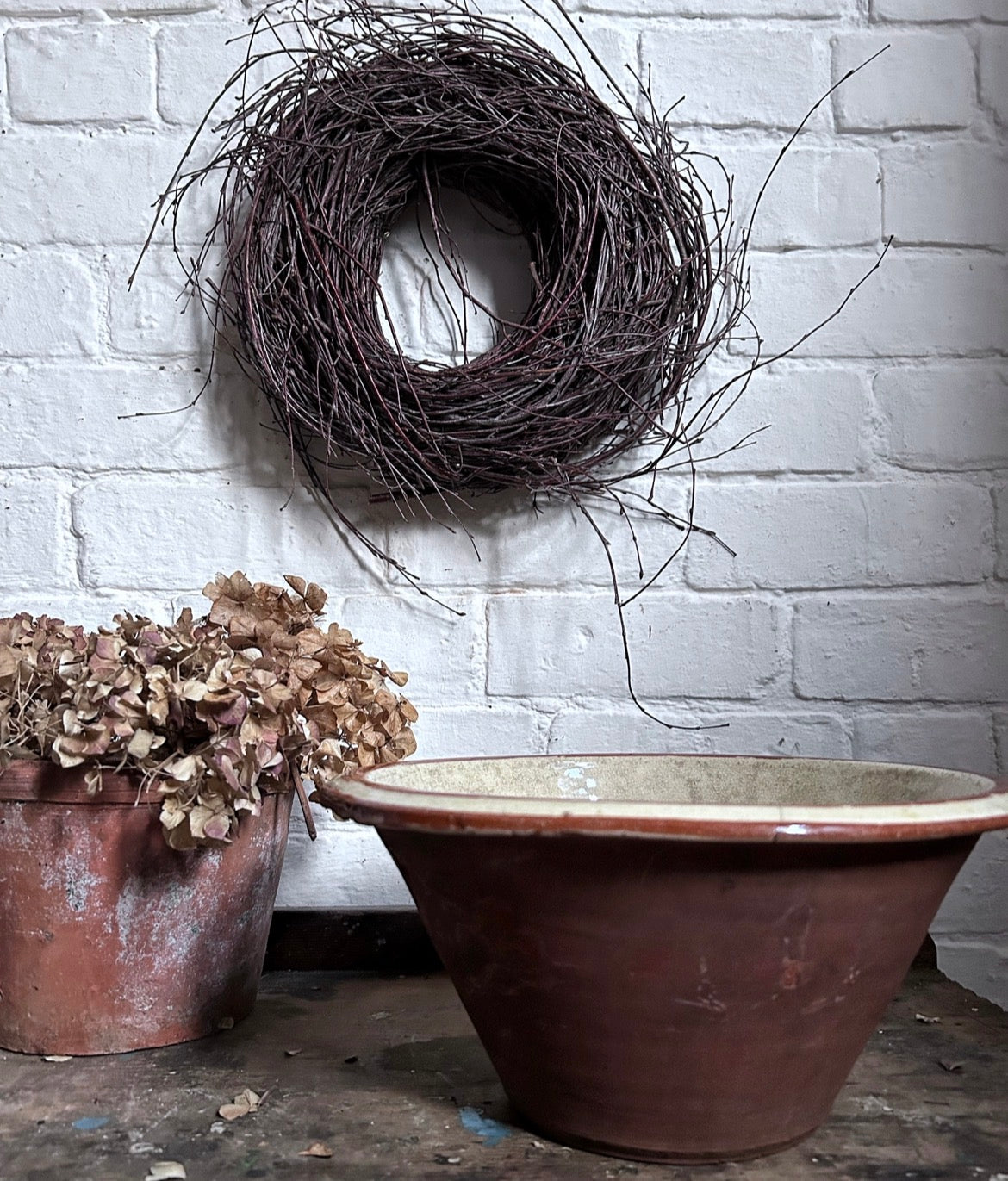 An Antique 19th Century slipware terracotta dairy bowl, Pancheon. Traditionally found in country house kitchens.