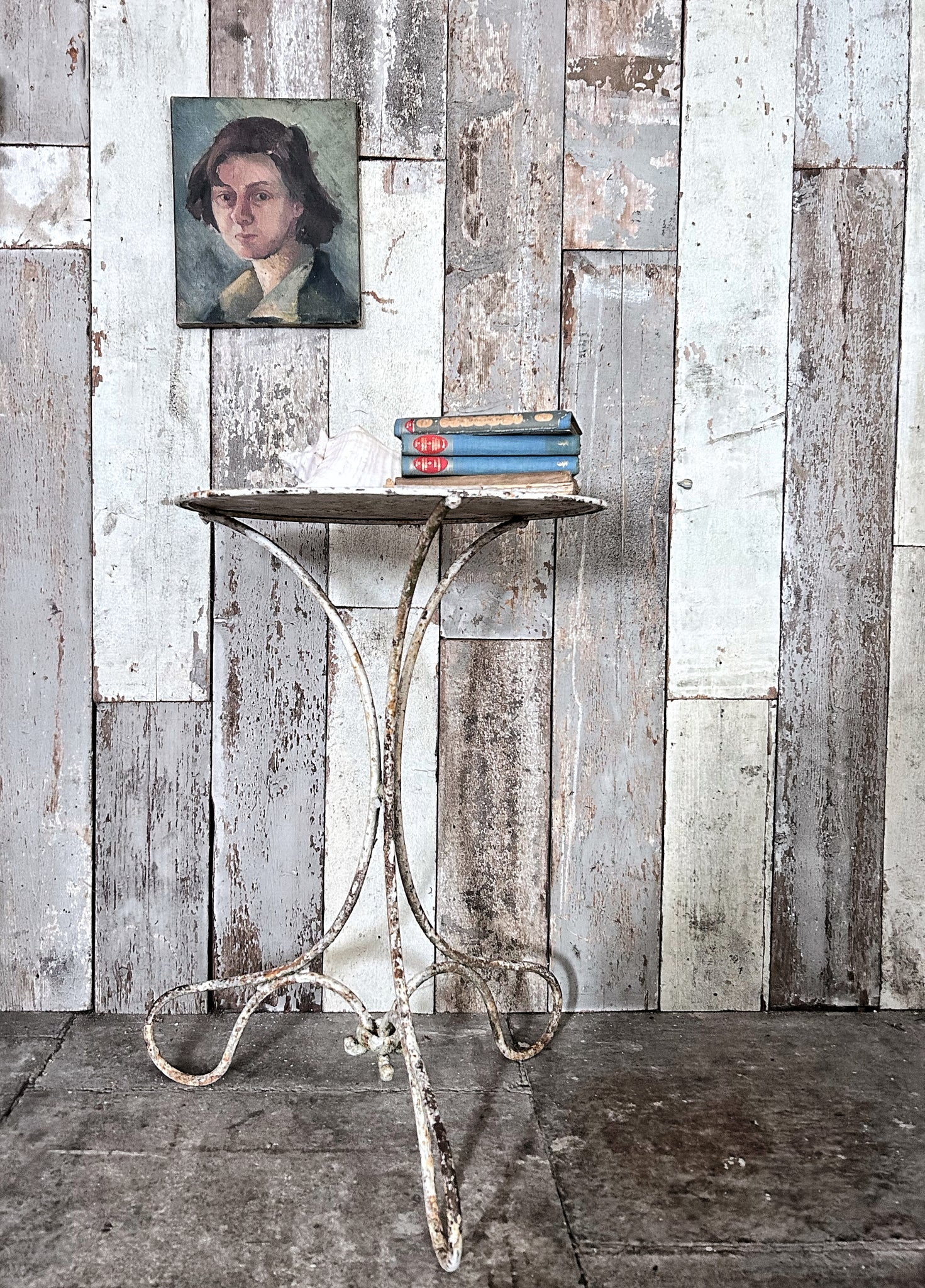 The original white paint has worn to a nice patina and most of the top is now down to the metal so would benefit from waxing or oiling if using outside.