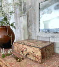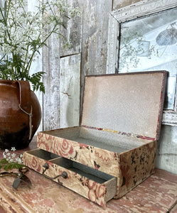 A French vintage, 1930's floral fabric, covered storage box, with a drawer.